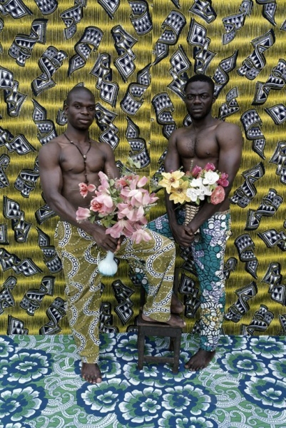 for this series Agbodjelou has them holding fake flowers, a somewhat incongruous