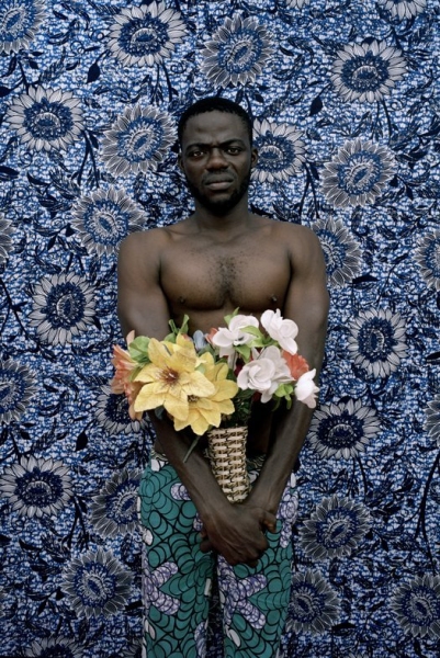 for this series Agbodjelou has them holding fake flowers, a somewhat incongruous