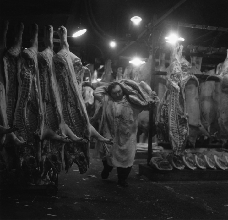 Arbeiter mit Schweinehälften, Paris (1955)