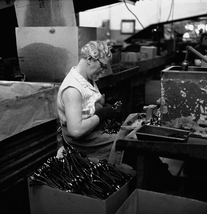 Arbeiterin am Fließband bei Ford, Detroit (1958)