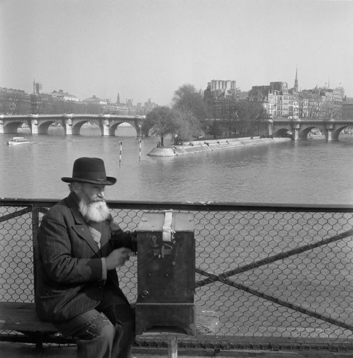 Drehorgelspieler an der Seine, Paris (um 1950)
