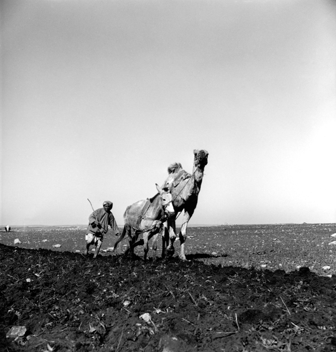 Dromedar und Maultier als Zugtier, Marokko (1952)