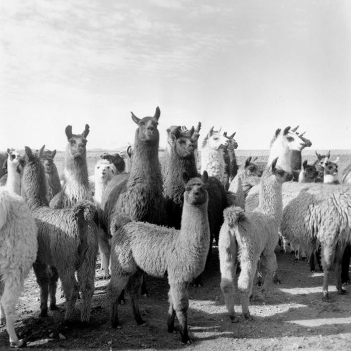 Eine Lama-Herde auf dem Altiplano, Bolivien (1954)
