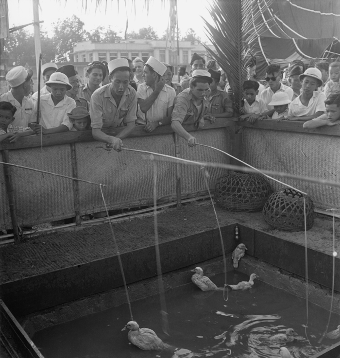 Fremdenlegionäre beim Entenangeln in Langsom, Vietnam (1950)