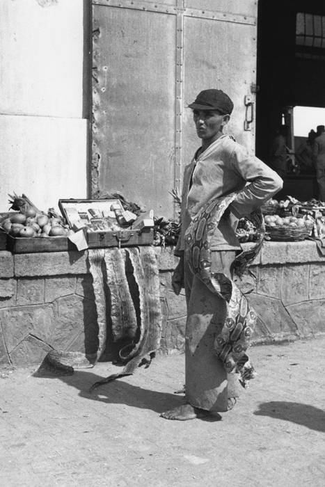 Händler mit Schlangenhäuten in einem Hafen, Brasilien (1935)