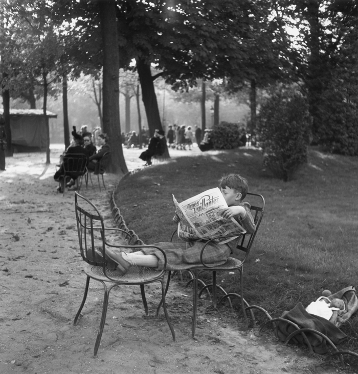 Junger Leser im Park an den Champs Elysées, Paris (1947)