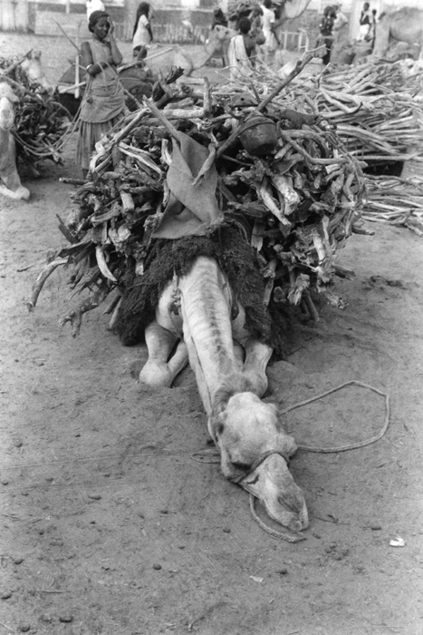 Kamel mit Holzlast auf dem Kamelmarkt, Dschibuti (1939)