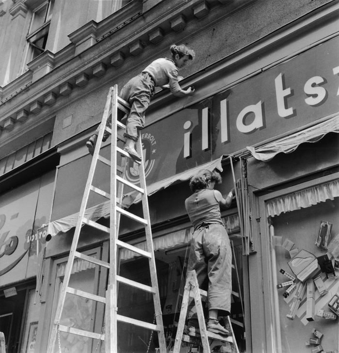 Malerinnen an einer Hausfassade, Budapest (1968)