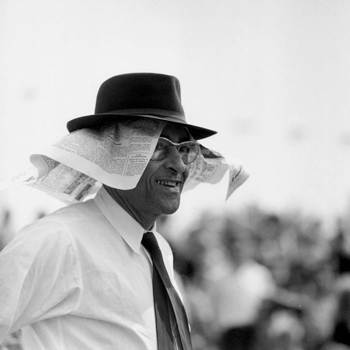 Mann mit Sonnenhut aus Zeitung, Frankreich (1959)