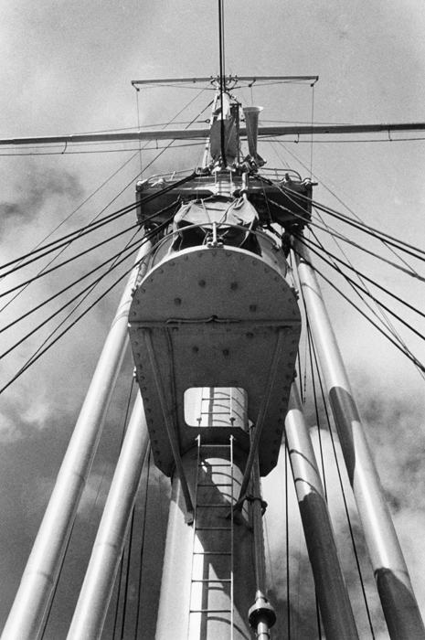 Mast eines Dampfers mit Nebelhorn, vermutlich Madagaskar (1938)