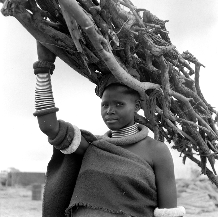 Ndebele trägt Äste zum Hüttenbau, Transvaal (1953)