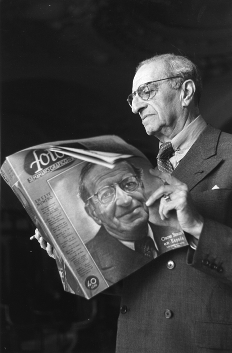 Oskar Nathan Strauss liest Gazette, Monaco (1946)