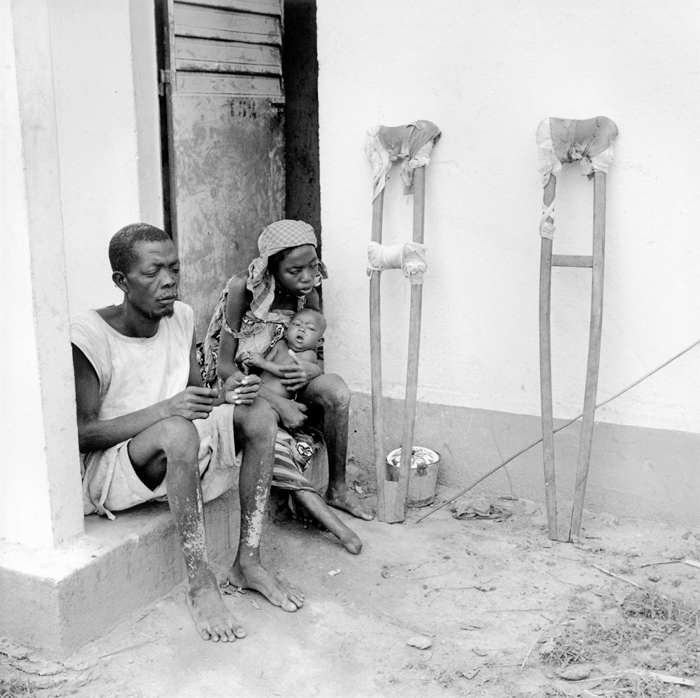 Paar mit Lepra und gesundem Baby, Mali (1959)