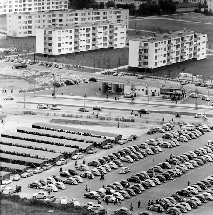 Parkplatz am Volkswagenwerk, Wolfsburg (1954)