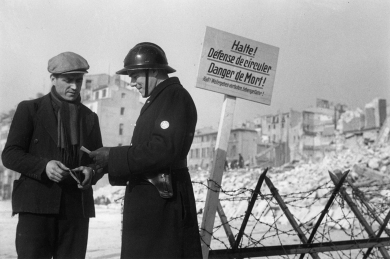 Passkontrolle der Wehrmacht am Hafenviertel Marseille, Frankreich (1943)