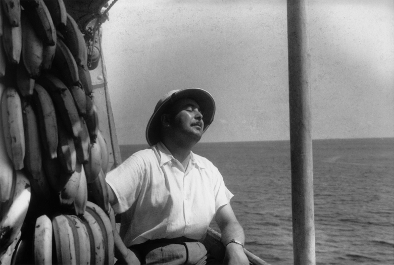 Paul Almasy mit Bananen an Deck der 'Monte Rosa' (1935)