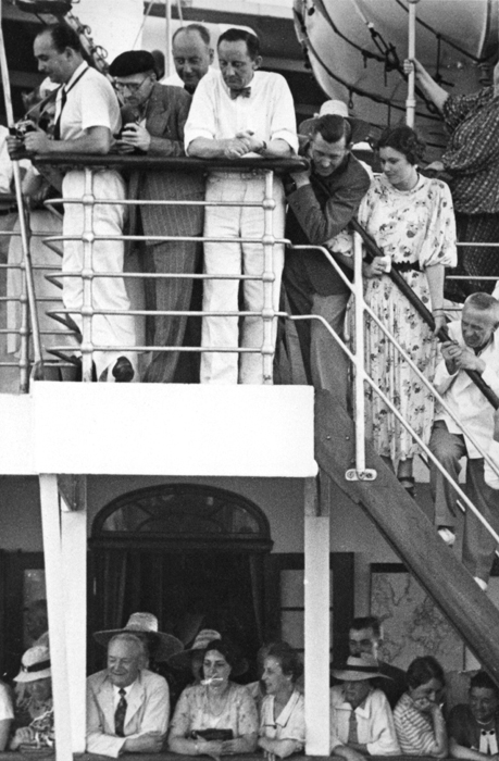 Paul Almasy mit Leica an Deck der 'Monte Rosa', Brasilien (1935)
