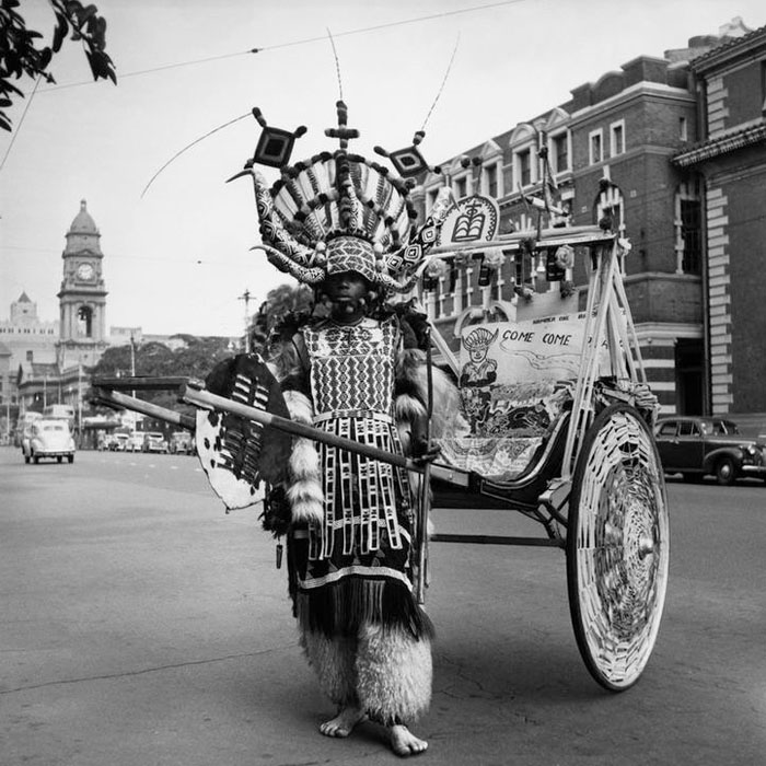 Schwarzer Rikschafahrer in Durban, Südafrika (1953)