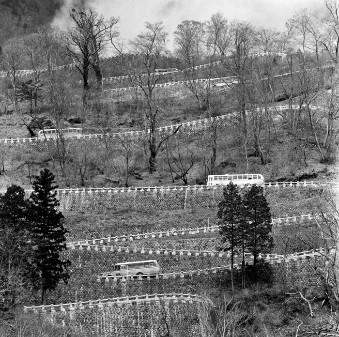 Serpentinen zwischen Nikko und Numata, Japan (1970)