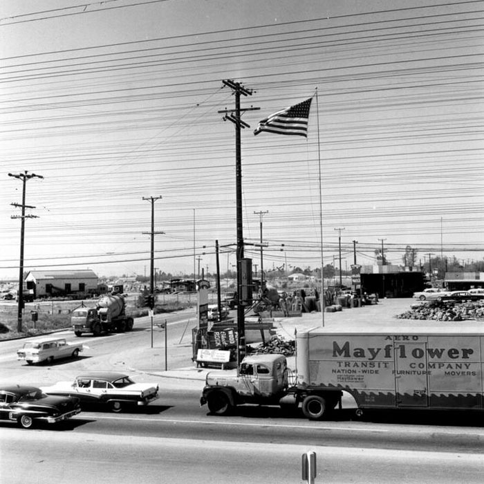 Straßenkreuzung mit Stromleitungen Los Angeles, USA (1960)