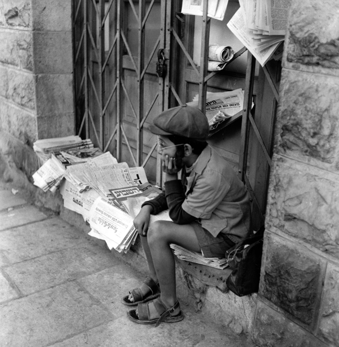 Zeitungsjunge in Tel Aviv, Israel (1962)