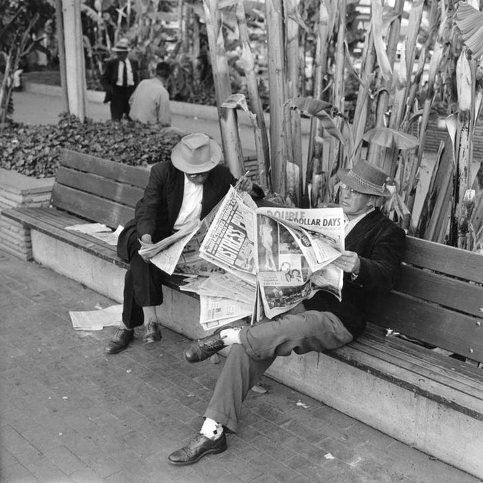 Zeitungsleser auf der Parkbank, Chicago (1958)